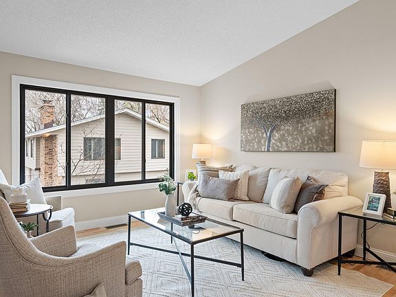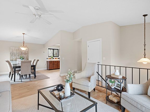 This St. Louis Park townhouse offers urban convenience and natural tranquility. Situated near The Shops at West End and I394, and surrounded by parks, it blends city amenities with suburban calm. Inside, a welcoming living and dining area features a lofty vaulted ceiling and newly refinished maple floors. Energy-efficient Pella windows promote sustainable living. The kitchen boasts a distinctive Mexican tile backsplash and ample storage. The upper level includes a carpeted primary bedroom with a walk-in closet, a full bath, and space for an office or second bedroom. The lower level offers a third bedroom, laundry room, and family room with access to the backyard patio. A tuck-under 2-car garage and nearby parks complete the picture of versatile living.