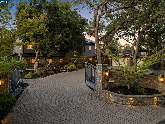 It's all about the views! Whether it's the sight of Mount Diablo over a fog-covered valley, eye-level views of red-tailed hawks, or watching the sun rise into a fiery sky, the scenery here never fails to impress. The property is secured by a beautiful wrought iron gate, defining its boundaries and setting the tone for the quality of life within. On the 3.72-acre property is the main home with 5 bedrooms and 3 baths and a detached 1128 guest suite with a separate entrance. The main home features Loon Lake Natural Stone and James Hardie fiber cement shingles for curb appeal and fire safety. The arrangement of the two homes offers flexibility—extended family, caretaker or nanny quarters, income generation, or an office. The home has been updated and meticulously maintained, with most rooms enjoying spectacular views. The grounds are gorgeous, featuring massive oaks, mature trees, and carefully chosen perennials and shrubs for year-round color. The rectangular pool, with a hot tub and motorized cover, is surrounded by stamped concrete and adjacent to a huge redwood deck. The outdoor areas are perfect for entertaining or solitary enjoyment. Rooftop solar panels electrify the home. An EV charging outlet is in the garage and battery backup ensures continuous power.