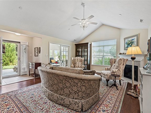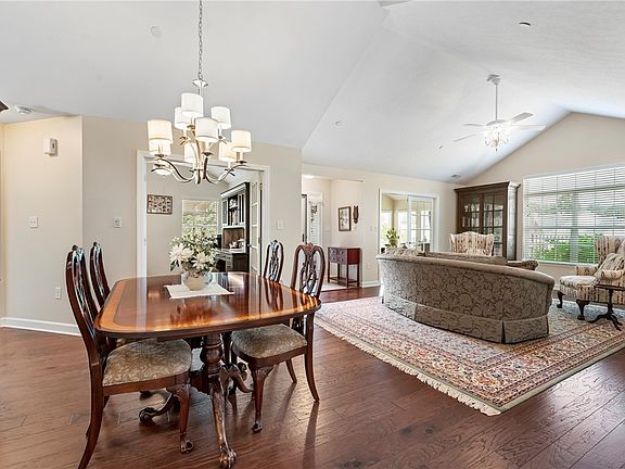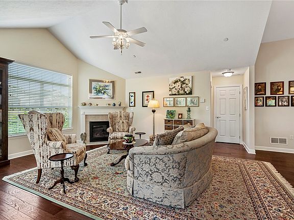 Exquisite custom patio home thoughtfully designed by Weaver Master Builders. The welcoming entry boasts hardwood floors than span much of the main level. The attention to detail is evident with the vaulted ceilings and walls of windows offering sprinkles of sunshine that flow throughout the home. French doors lead to the den making a great office or 3rd bedroom. A sunroom displays sweeping views with the walls of windows & offers access to one of the two patios. The delightful kitchen boasts cathedral cabinets with above & below cabinet lighting, deluxe stainless appliances, granite counters, & tiled backsplash. A lush master suite offers a huge walk-in closet & ensuite full bath with double bowl vanity & walk-in tile shower. Enjoy picturesque views of the private tree lined yard from the patio w/retractable awning,or from the 2nd patio dotted with perennials. Have the maintenance free lifestyle & amenities you want w/pool, clubhouse,& fitness center. Minutes to shopping & restaurants.
