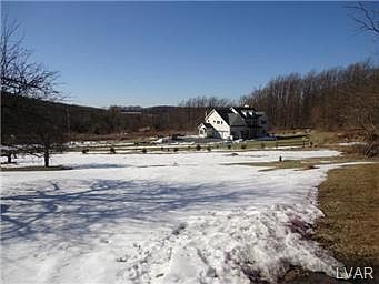 Upper Saucon ranch on top of South Mountain in Southern Lehigh School District. This home offers 2 bedrooms and 1 full bath that has been recently updated. The eat-in kitchen is spacious and has plenty of storage and counter space. The full basement walks out to the back yard. There are 3 large garages, two are attached to the home and together measure 25 x 21; the other is a pole barn. There is also a large shed with full garage door for even more storage. The home has a small office/sitting room off the kitchen and an enclosed patio between the house and garage. Heated by an electric heat pump and cooled with central air, why rent when you can own this home for less. Great yard with panoramic views. Priced to sell
