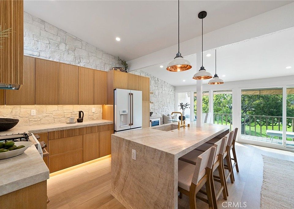 ***Price Improvement***As you enter, be captivated by the seamless fusion of modern design and timeless elegance. The entire home has been transformed with custom white oak cabinetry, showcasing a level of craftsmanship that exudes sophistication. The kitchen is a culinary masterpiece, featuring these bespoke cabinets, complemented by Taj Mahal quartzite countertops that elevate the aesthetic to unparalleled heights. Indulge in the art of entertaining with a top of the line GE Cafe Matte fridge and a dedicated wine fridge, seamlessly integrated into the kitchen, adding a touch of glamour to your gatherings. Every inch of this residence has been carefully curated to exude a sense of luxury and refinement. The bedrooms are sanctuaries of comfort and style, each boasting luxury wood like vinyl floors and custom-built closets that marry functionality with aesthetics. The attention to detail continues in the bathroom, where dual sinks adorned with Taj Mahal quartzite exude a spa-like ambiance, offering a daily retreat into opulence. A full 2-car garage provides convenience and security, offering ample space for your vehicles and additional storage. Every corner of this home has been transformed into a masterpiece, showcasing an impeccable blend of luxury finishes and unparalleled attention to detail. This residence is not just a home; it's a statement of refined living, offering an extraordinary lifestyle for those who appreciate the finest things in life. Don't miss the opportunity to call this fully remodeled home yours—a sanctuary where every detail has been thoughtfully considered for the ultimate in comfort and sophistication. Nestled in a prime location, this property offers the utmost convenience, being in close proximity to parks, tennis clubs, esteemed schools, shopping centers, and just minutes away from the captivating oceanfront. Whether you're embarking on a new journey, downsizing, or yearning for a tranquil vacation retreat, this residence presents an ideal choice.
