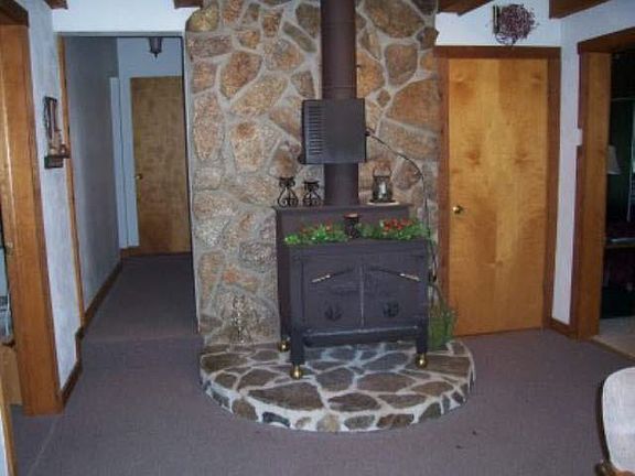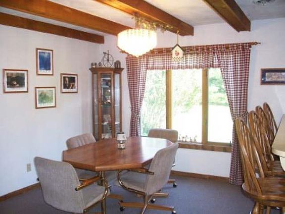 This country offering may be what you've dreamed of: 4 bedroom, 2 bath home on 3 acres. 2 story barn with phone service, housing for four cars, concrete flooring, carport and basketball court. Fenced dog kennel. Garden plot, stocked pond, mature trees and for nostalgia--an outhouse and a four line clothes line! House has a woodburning stove in the dining area, a full wall of book shelves and a wood burning brick fireplace(w/gas log) in the livingroom. There is electric baseboard heating, still installed, but home is heated by gas forced air furnace and has central air. You'll never be without a heat source! Per seller: every room has phone jacks and cable hook up. Wrap around front porch and large back deck for enjoyment of the outdoors. A lot for the dollar here! Call for an appointment!
