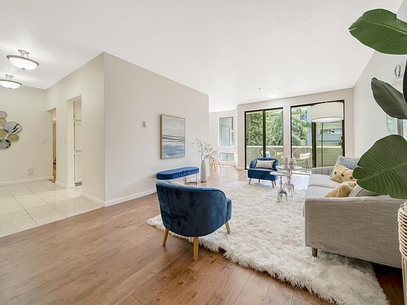 Amazing Woodspring condo on the border of Cupertino/Los Altos. Award winning Cupertino schools: West Valley Elementary, Cupertino Middle, & Homestead High. Home is bathed in lots of natural light from the huge windows. Step into the gleaming hardwood floors and newer whole house paint. Additional Storage room close by the unit. Large balcony with the pool view. Decent size living space nice for work and play. Secure building with beautiful serene grounds that offer a pool, spa and club house. Two covered assigned parking spaces close to elevator. The unit is right next to a fantastic shopping center that features Trader Joes, Peet's coffee, Rite Aid short time to drive to apple and major tech companies. Easy access to 85, 280 & Foothill Expwy. Prime location just steps.