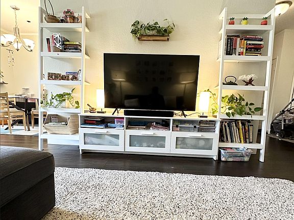 Large mature redwood treesNew fridgeHigh ceilingsDining areaKitchen with stainless appliancesRecently replaced bosch dishwasherTwo large bedrooms