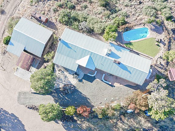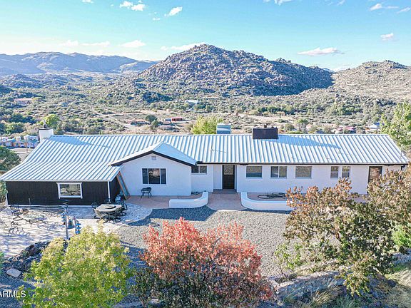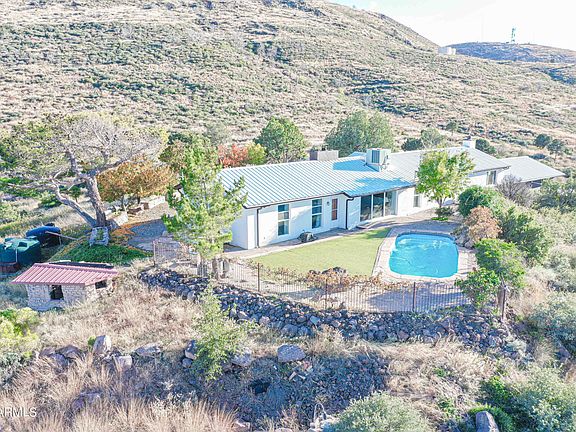 HUGE PRICE REDUCTION! $10K SELLER CONCESSION. 2.75% INTEREST RATE AVAILABLE! Multi-MILLION dollar views (360* views of mountains, boulders, valleys and stunning sunrises/sunsets) at a fraction of the price can be yours on this 9.6 acre private hilltop estate. This home has 3 bedrooms + den/sitting room, 2 baths (both remodeled & HUGE primary w/ rain shower & separate tub), separate garage with studio & storage, SPLITTABLE LOT, sparkling pool w/ waterfall and views, ginormous laundry room and pantry area, NO HOA, covered workspace, horse and livestock compatible, relaxing patios front and back, mature fruit trees, garden area & more. Many upgrades have been completed such as new septic tank and plumbing to the home in 2016, bathroom remodels, etc. Excellent well with 2K gal tank and booster Top 10 things the sellers love about the home.