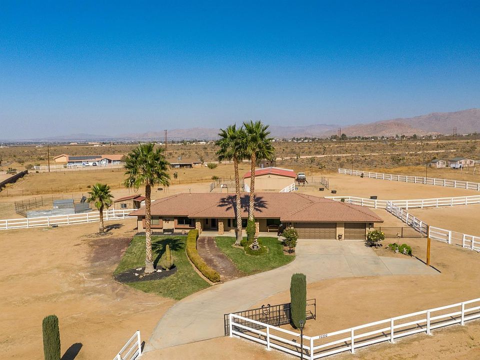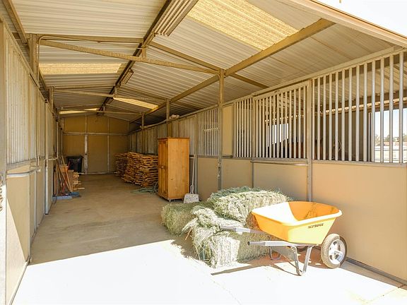 EXTRAORDINARY HORSE PROPERTY! All set up, ready to go is this custom built, original owner home. Well maintained & chock full of upgrades including loads of cabinetry through out home, including in office room that could serve as 4th BR with own full bath-this suite is at opposite end of house from other BR's. Kitchen has tons of cabinets, including pantry, newer dishwasher & microwave. Spacious dining nook looks out to back yard, barn & horse area. Tile floors in living areas & office, carpet in BR's Family room has vaulted ceilings, corner wall fireplace. Tiled entry leads to formal living & dining rooms. The master BR is spacious & has access to back patio. Large well appointed bathroom & walk in closet. Outside you will find 1.99 acres of fully fenced & x-fenced property, including front & back yards, 3 separate fenced areas for horse turnouts or arenas. Corral w/shelter. Tack shed with raised porch. Wait until you see the 8 stall Barnmaster breezeway barn with 8 12x12 stalls w/grilled fronts, feeder doors. One side has pipe corral turnouts. Concrete aisle way has lights, electric outlets. At the far end of the barn is a huge overhang, ideal for hay or tractor storage. All fencing has just been painted, also front of barn & breezeway doors & also the house trim & garage doors. Auto entry gates at driveway for maximum privacy & security. House sits at dead end street with view to west. Landscaped front yard. Full length rear covered patio, front porch, tile roof. 3 car gar