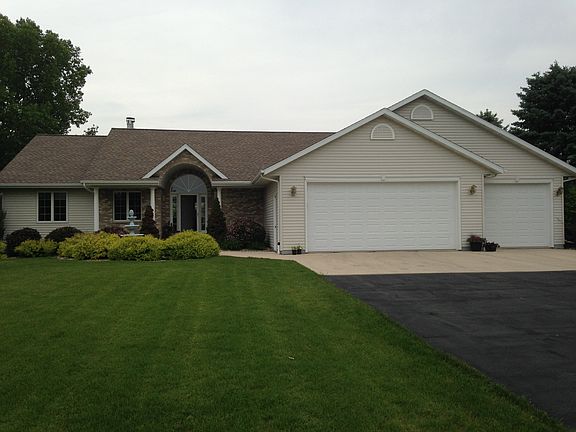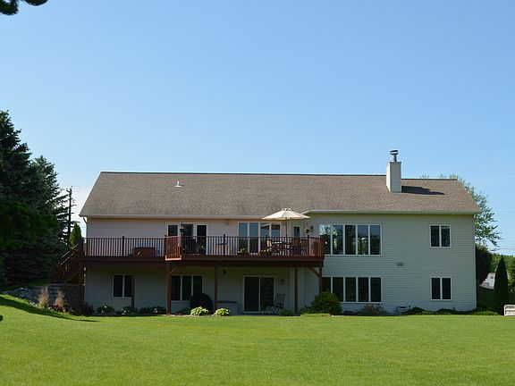 Impressive open concept home offering spectacular waterfront views! This home sits on 178 feet of riverfront and offers 1.39 acres only a mile from town. Features include a split bedroom floor plan with custom maple cabinets, vaulted ceilings, gas fireplace in living area, master suite with a dual-head walk-in shower, large master closet, 3.5+car attached garage, fully finished walk-out basement with in-floor heat, 9' ceilings and a wood burning fireplace, 6-panel doors throughout, large deck, and several bonus rooms. This 4+bedroom, 3.5 bath home has been impeccably maintained. New water heater and softener in 2014, new carpet in master 2014, new living room carpet 2012. Additional property info: http://www.forsalebyowner.com/listing/4-bed-Single-Family-home-for-sale-by-owner-22332-Rockville-Road-53042/23995367?provider_id=28079