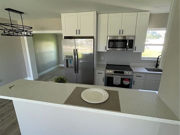 NO Damage after Hurricane!!! STOP LOOKING FOR HOUSES, THIS ONE HAS BEEN TASTEFULLY REMODELED AS MODERN FARMHOUSE THEME. Very large 2 bedroom 1.5 Bath open concept home. Featuring beautiful brand new shaker cabinet, granite tops, new appliances, new roof, new electrical 2024, new AC 2024, new hot water heater 2024, new windows in the back room 2024, all new luxury laminate waterproof flooring throughout, new baseboards, new woodwork, new fans, new lights throughout, fresh paint in and out and garage. House is Bigger than sq. footage with the additional back room it can be used as a Family Room and or DEN! House is NOT IN A FLOOD ZONE! Come see the quality of work done to the house and schedule your showing today.