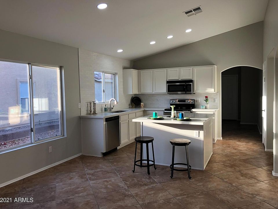 Buckeye is the place to be! Tastefully remodeled 3 bedroom 2 bath home plus a second front room living space is now available. Recent Updates include new appliances, custom tile backsplash, sparkling stone quartz counters, new sinks, faucets, door hardware, ceiling fans and lighting, interior paint and landscaping. With a fantastic open concept layout that maximizes the use of space, oversized kitchen island, and tile throughout, this lovely home checks all of the boxes. Near shopping, schools, and freeway access, this charming property will not last long. Come see it while it lasts! Owner pays HOA fees. No utilities included in rent. Pet friendly with an additional deposit.