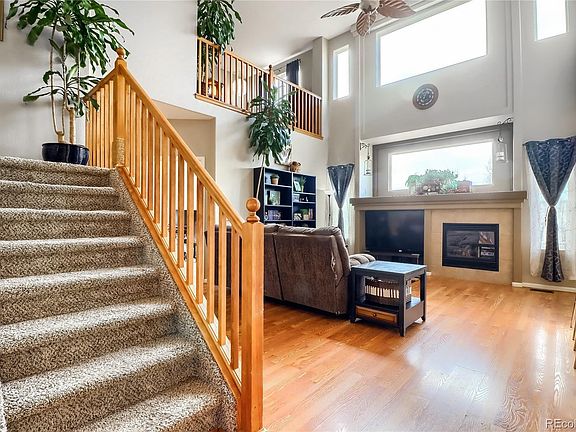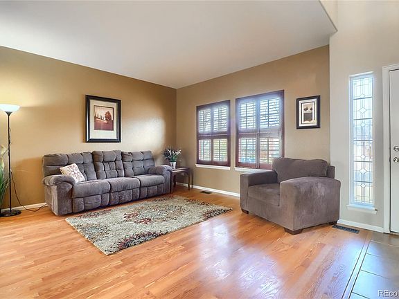 Rare Saddle Rock Ridge home with unbeatable location on a greenbelt and quiet cul de sac. Main floor features updated kitchen with granite counters, stainless steel appliances and plenty of cabinet space. Open living room with gas fireplace and vaulted ceilings. Formal living room, dining room, powder bathroom, laundry/mud room and study. Private master suite with 5 piece bathroom and walk in closet. 3 additional bedrooms upstairs, full bathroom and loft. Unfinished walkout basement with structural subfloor-perfect for storage or future expansion. Basement dog kennel included. Storage space in the attic. Fenced backyard with gorgeous views of the neighborhood greenbelt. Pergola, hot tub, playset and trampoline included. Newer exterior paint, appliances and water heater. New Trex deck with transferable warranty. Easy access to E-470, DIA, Aurora Reservoir and Southlands Mall. Welcome home!