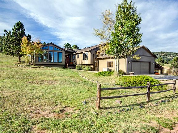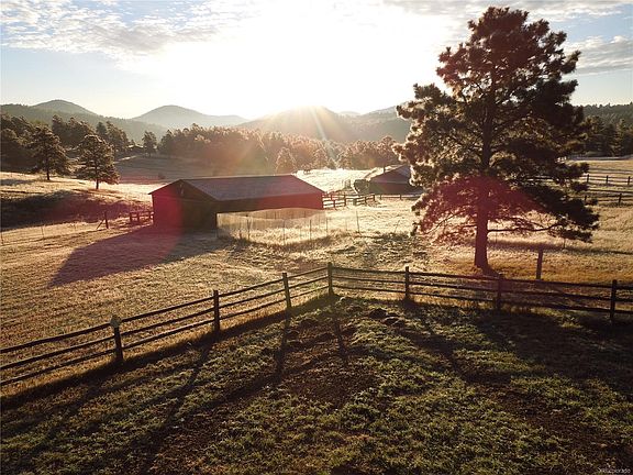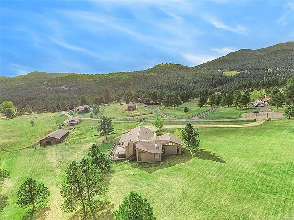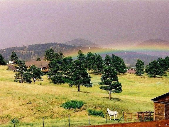 Amazing mountain home on 3.8 of the most beautiful acres out there! The first word used by your guests will be "Wow!" This ranch style horse property is just 35 minutes to downtown Denver. Large horse barn with fenced enclosure and usable land. Large living room with floor-to-ceiling windows gives amazing panoramic views, allowing you to be surrounded by herds of elk and deer. East side deck overlooks breathtaking foothills skyline and rolling fields of grass. Charming master suite with meadow views of ponderosa pine has oversized master closet and jacuzzi tub. Separate mini-master with attached bath. Updated kitchen with granite and stainless steel. English oak hardwood floor throughout main level, and natural stone through lower level. Large covered patio, perfect for viewing the winter elk herds, complete with powerful natural gas heaters to keep you warm. Newer hot tub, and whole-house generator. Property even has its own mini trail system, with spectacular views along the trails.