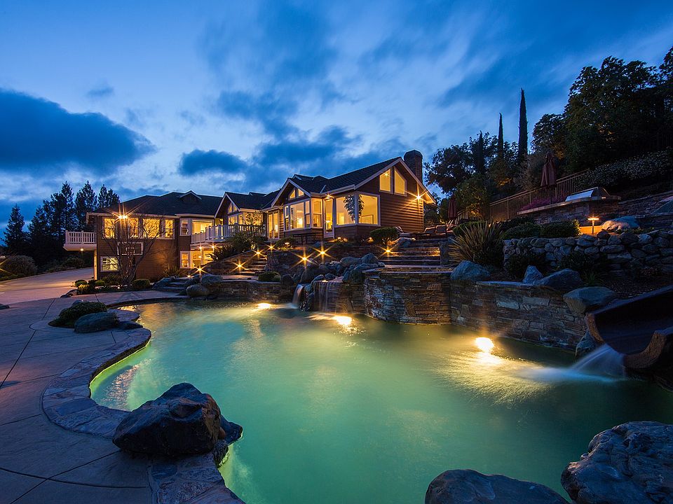 Stunning estate with sweeping pastoral views & resort-inspired backyard featuring waterfalls, slide and spa. Impeccable home offers a decadent master wing, inviting in-law suite, gourmet kitchen, rec room, gym, lots of windows, natural light & much more. Electric gate to 8 car attached/detached garages!