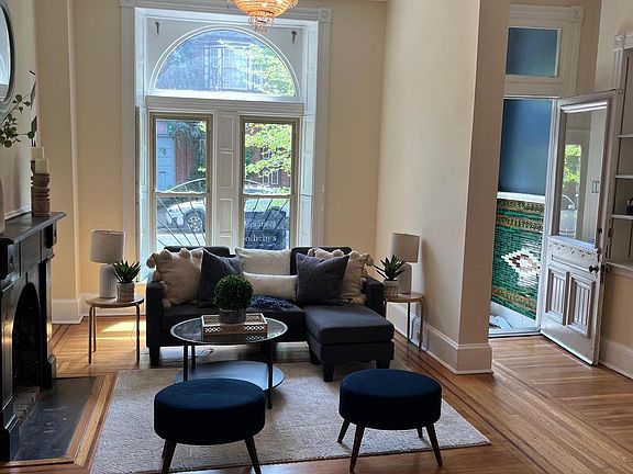 Don't miss this rare inventory! This classic Butchers Hill row home is an end-unit, with parking, steps from Patterson Park. It is large- 2,671 square feet above grade- plus has as large, unfinished basement with great ceiling height. This historic home full of charm and original details has been modernized with 2 zone heating and air conditioning systems (2 new condensers), 2 water heaters, a new roof, and a fantastic recently updated roof deck with spectacular views. The main level has a large living room with gas fireplace, an eat-in kitchen, a powder room, a dining room, and a mudroom with bathroom. The home has wood floors throughout with special inlay details on the main level. Upstairs, on the second level are three sizable bedrooms with two full baths. The rear bedroom opens to a covered balcony. The third has a huge front room, a sizable rear area (all open/loft style), a full bath and opens to the lower deck leading to the roof deck. This location is very walkable to the downtown Hopkins campus, the waterfront, and area favorites such as La Barrita, Marta Fine Foods, Water for Chocolate, Charmed Kitchen, Patterson Public House and Ministry of Brewing.