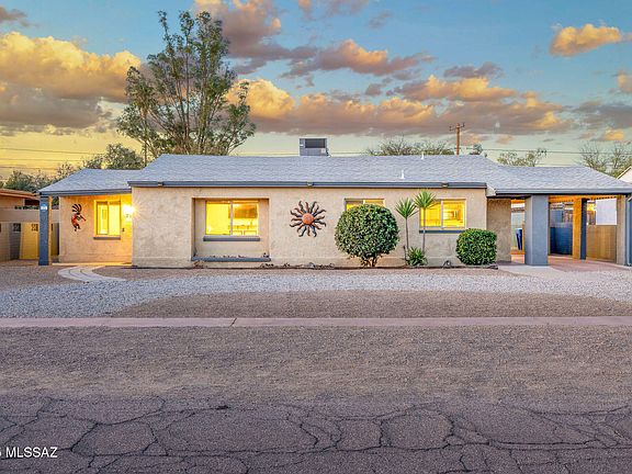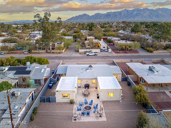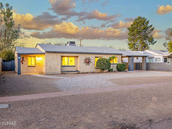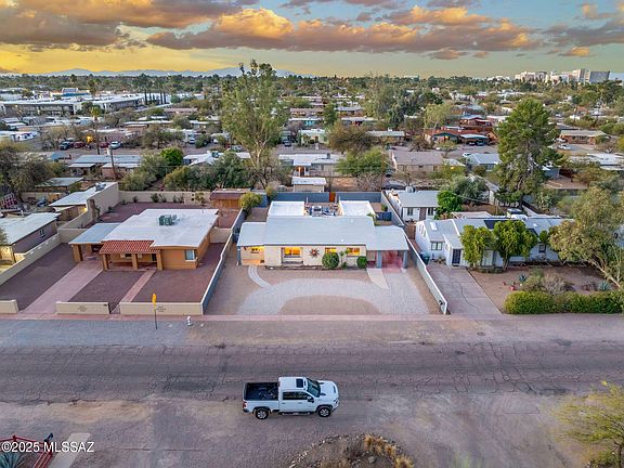 Amazing opportunity for updated turnkey 5 bedroom/3 full bath 2,303 SqFt split floor plan 1950 Mid-century modern masonry stucco ranch home on large .23 acre R-1 lot, no HOA, room for RV/camper parking, in desirable Campbell-Grant neighborhood in thriving Central Tucson. Perfect solution for those looking for a multigenerational living solution, an Airbnb investment property (mid-term rent $6900 per month), seasonal visitors, secure student housing, boasting a 84 Walk Score & 97 Biker's Paradise, close to the University of Arizona, Banner Medical! N/S orientation providing front Catalina Mountain views, architectural shingle roof, low care front yard, flower garden, on and off street parking, massive front driveway, covered front patio and carport w/separate side entrance. Inside buyer will appreciate Smart Ring door camera system, Smart Yale electronic locks, updated energy efficient double pane windows throughout, updated plumbing, updated electrical panel, grounded electric, custom window blinds, painted textured ceilings (no popcorn), 20 inch tile and luxury plank flooring throughout (no carpet!), zoned gas roof HVAC plus two separate mini-splits, Nest smart digital thermostat, massive living room, custom wall mural art, recessed lighting, internal laundry room with washer & dryer, and vintage built-in ironing board. All furniture can be included with right offer! Remodeled open concept kitchen featuring full slab granite counter tops, granite bar seating, recent stainless finger printless steel appliances including dishwasher, side-by-side refrigerator, electric oven and built-in microwave, modern shaker kitchen cabinets, lazy susan, and large undermount kitchen sink with garden window providing Catalina Mountain views adjacent to dining area. Offering two primary suites each with separate mini-splits, updated full ensuite bathrooms, large full guest bathroom with modern dual sinks, updated tiled tub and separate tiled walk-in shower. Private backyard perfect for entertaining around large gas burning outdoor fire pit to enjoy tranquil Tucson nights. Convenient Central Tucson location where most errands can be accomplished by foot, enjoy fine dining at Culinary Drop Out, Postino, Snooze, Kingfisher, Blue Willow restaurants plus shopping on Campbell Ave, minutes away from Banner Medial and the University of Arizona. Call to make your appointment to view this move in ready home today!!