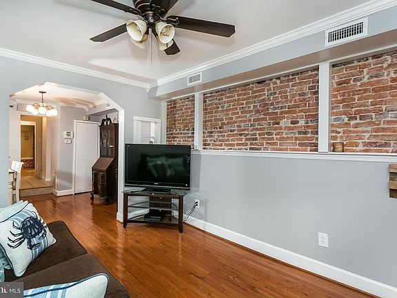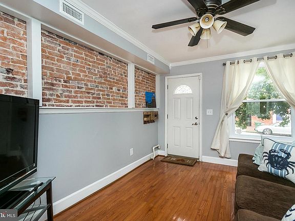 Charming Fells Point home with original details throughout. Living room w/ crown molding & exposed brick leads to separate dining room flowing into kitchen with large pantry. Second floor master suite with large master bathroom. 2 additional bedrooms on 3rd floor with brick fireplace mantel and exposed beams. Private back patio. Move-in ready- relax & enjoy!