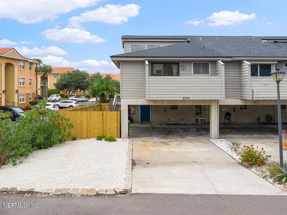 Welcome home to this South Jax Beach BEAUTY! Located 2 blocks from the beach and walking distance to fantastic shopping, dining and coffee, this townhome has been remodeled top to bottom! With 2 bedrooms and 2.5 bathrooms, this is a perfect place to call home, have as a 2nd home or lease out. New Roof, New HVAC, completely renovated kitchen with quartz counters and white shaker cabinets, renovated baths, New wood flooring, FULL laundry room with shelving and 2 car carport with room for additional cars! No HOA's!