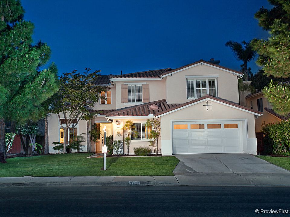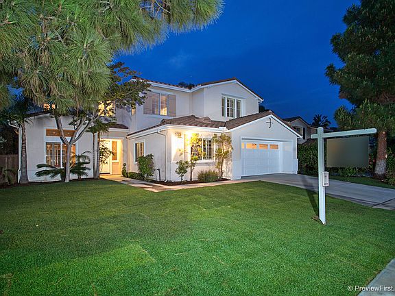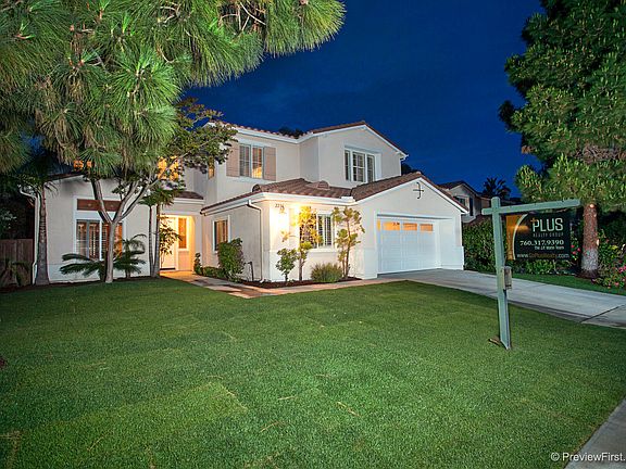Spacious and move-in ready Carlsbad home with views. Located on the view side of masters with a pool sized yard, this light and bright home features 5 bedrooms, 3 1/2 bathrooms, a grand entrance with cathedral ceilings and extra large island kitchen with buffet. Brilliant floorplan provides a secluded guest quarters with en suite on the first level, as well as a spacious office or bonus room. Upgraded pattern carpet, travertine flooring and tankless water heater are a few other notable features of this beautiful home located in history rich Evans Point.