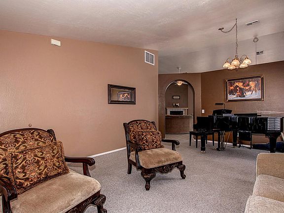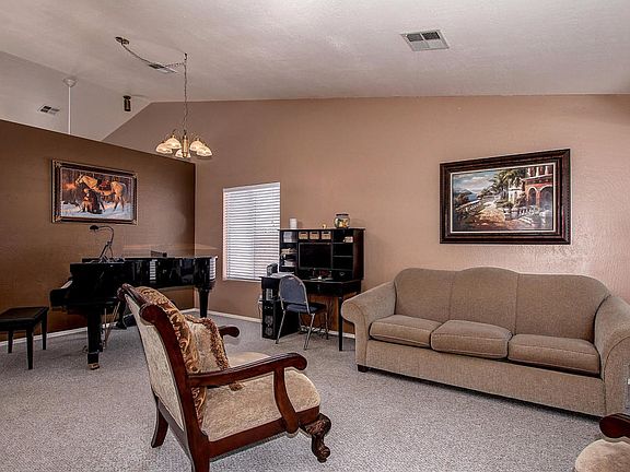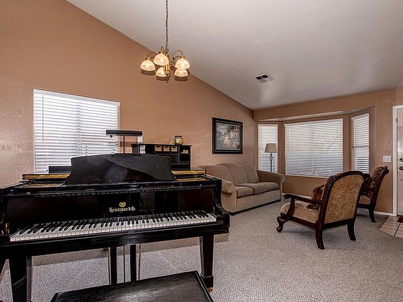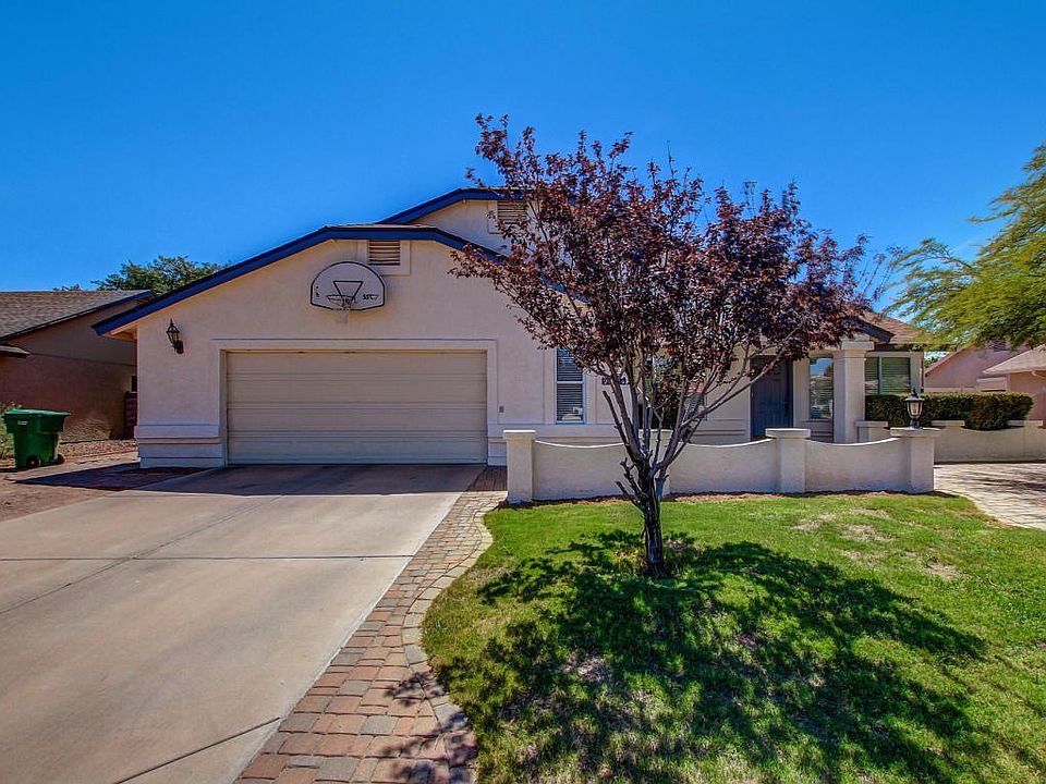 Your search is over. This lovely Mesa home is the one. Already impressive curb appeal with stone pavers in the front patio. Enter and notice vaulted ceilings, neutral interior palette and carpet in all the right places. The kitchen features white appliances, light wood cabinets and center island breakfast bar, perfect for cooking wonderful meals for the family. The living room has convenient media alcove for your entertainment system as well as a cozy fireplace for cold winter nights. Guest bathroom has doubles sinks with granite countertops and all guest bedrooms are carpeted with ceiling fans. The master has its own private en suite also with double sinks, plus luxurious walk in shower and separate tub. Great entertaining space in the backyard.