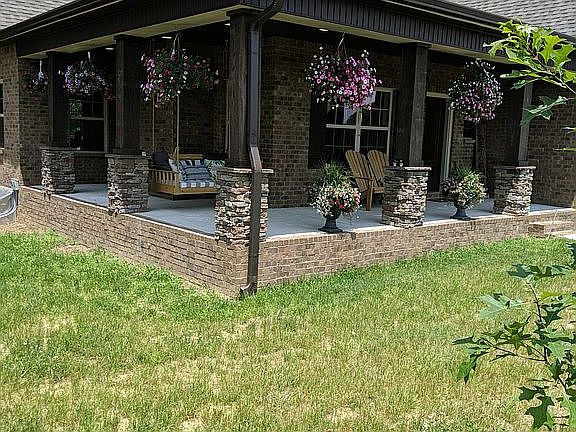3BR, 2 1/2 Bath two story home with two car garage. Master on first floor, two bedrooms upstairs with large bonus room. Master bath has oversize jetted tub and walk-in shower w/ glass sliding shower doors. Crown molding throughout living room and kitchen, also in master bedroom. Second bedroom upstairs has a large dormer with beautiful window and custom window seat. Tile in wet areas, carpet in bedrooms and upstairs hallway, hardwood floors on first floor. Large utility room with plenty of cabinet space. Dark cabinets with beautiful granite counters. Semi open kitchen/living room for entertainment. Fenced in back yard. Some mature trees, lot backs up to treed line. Farm in front of home, no subdivisions! Large L-Shaped front porch with beautiful wood/stone columns. Gas fireplace in living room. Security system already installed. Extended concrete pad in drive way for your RV, camper or boat. 5 min from Normandy Lake.