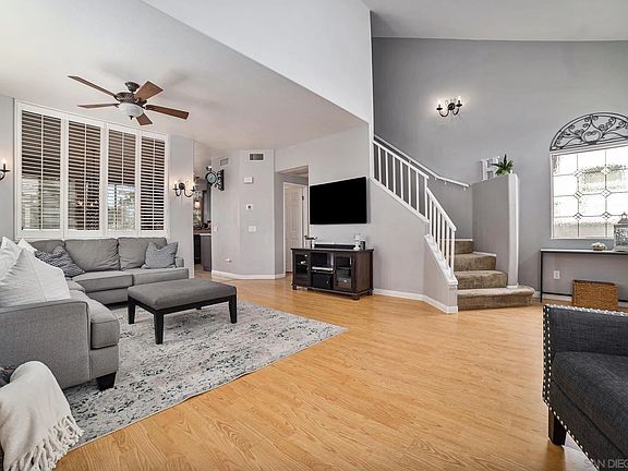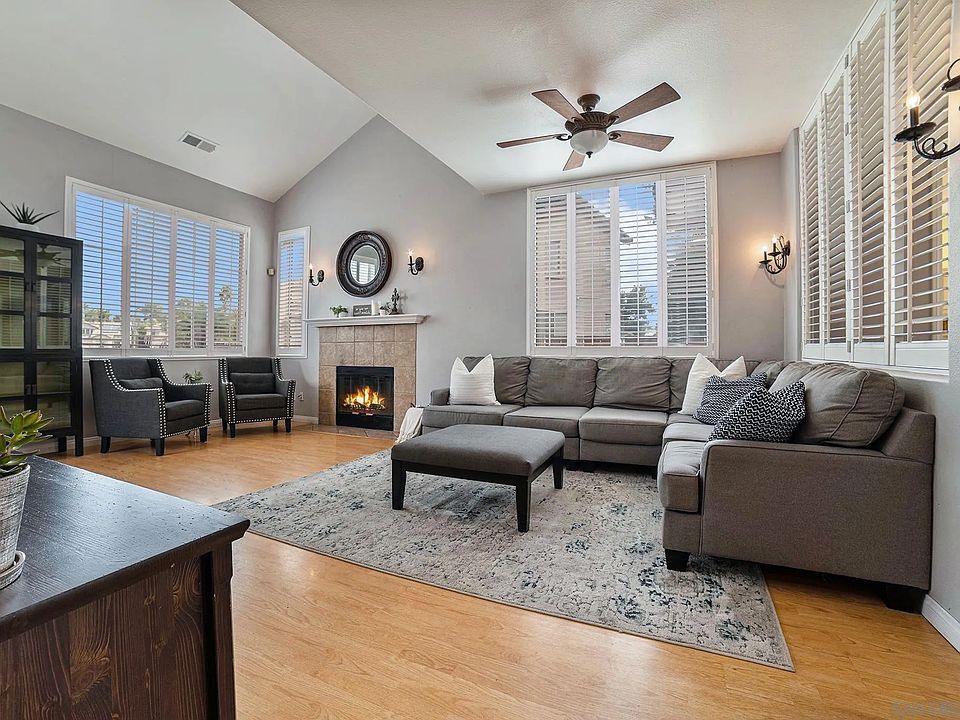 Welcome to this stunning single-family home located at 2234 Peachtree Cir, Chula Vista, CA. This spacious 1,773 sq ft residence offers a modern and comfortable living space with 4 bedrooms plus an office and 2.5 bathrooms. The interior features laminate floors throughout, creating a seamless and elegant look. The kitchen is equipped with stainless steel appliances and quartz countertops making it a chef's delight. The working fireplace adds warmth and charm to the home, creating a cozy atmosphere. Additionally, the property includes a home office and a powder room, providing functional spaces for work and guests.The primary ensuite features double vanities, a bathtub and a walk-in closet. With Pickleball and Tennis courts, 3 HOA pools, and No Mello-Roos, this is contemporary living at its finest!