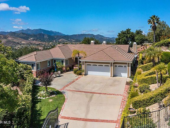 Welcome to a lifestyle of casual elegance in this privately gated, sprawling single story home with panoramic mountain and valley views! Ideally located at the end of a cul-se-sac surrounded by open space. Unique floor plan has been enhanced with huge, vaulted ceilings, large windows, and many skylights offering lots of natural light. Spacious living, dining, and family rooms with views. Enjoy entertaining with ease in the generous kitchen with all you need plus a large island, stainless steel appliances, eating area and opens to the family room with cozy bar area. There are three fireplaces in this gracious home - one in the master suite featuring a large bath encompassing a separate tub/shower, double sinks, individual vanity, and walk-in closet. Large secondary bedrooms with views. Private backyard was designed for entertaining with beach entry, pebble-tech pool & spa with waterfalls, cave, slide and cascading water. There is a BBQ center, large grassy area, and outdoor living area with fireplace, heaters, and ceiling fan. Triple car garage with ample storage cabinets. Solar system is owned. The HOA includes tennis and basketball courts in a park-like setting. Come relax and if you love gorgeous views and sunsets, this is the home for you!