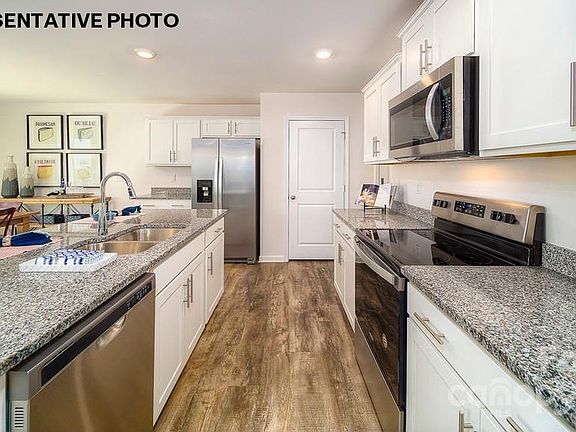 WOODED HOMESITE!! This bright and sunny home has 4 bedrooms, 2 1/2 baths and a beautiful open floor plan. Spacious kitchen with granite counters, large island, stainless steel GAS range/microwave/dishwasher and pantry opens into family room with a gas fireplace. Elegant and durable floors throughout first floor main living space. Primary bedroom features large walk-in closet and luxurious bathroom with large shower and raised height vanity & dual sinks. Fully sodded yard, blinds, garage door opener with remote and 8' x 10' rear patio all included! BRAND NEW HOME WITH COMPLETE BUILDERS WARRANTY!