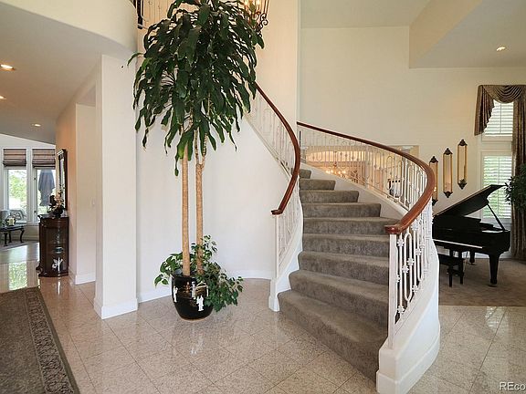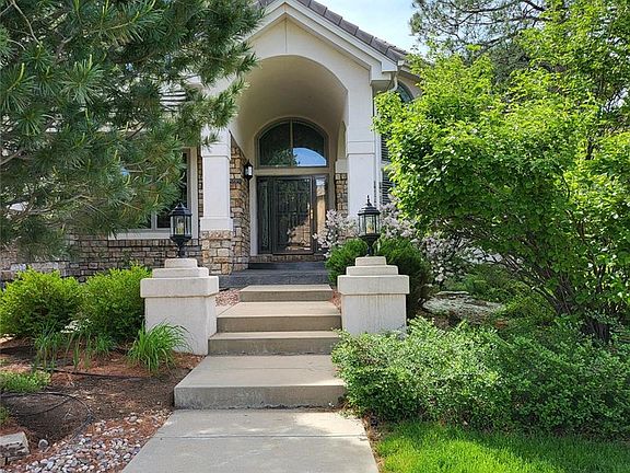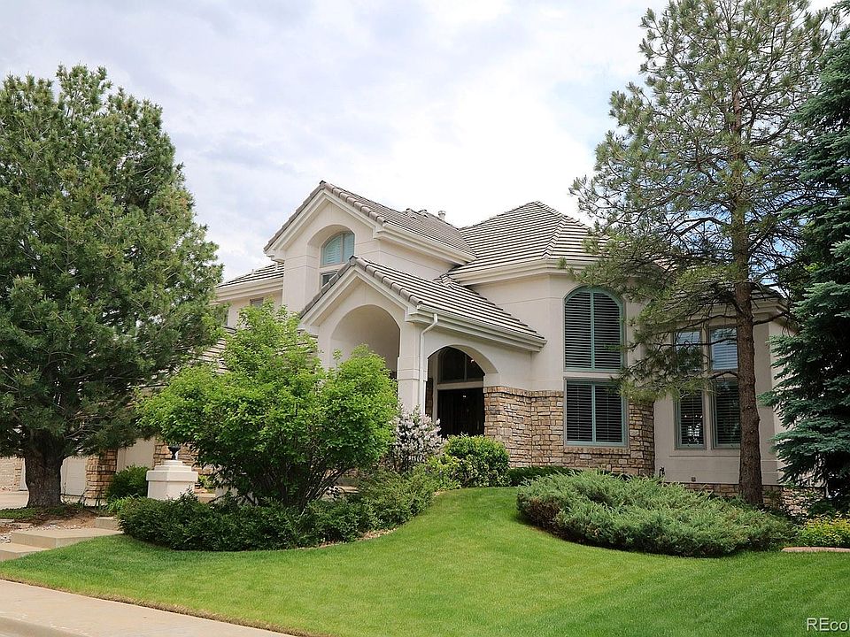 Incredible Custom Home in secluded and sought-after Celebrity Homes' Heritage West with Views to the Eastern Horizon. The Stone and Stucco exterior exemplifies timeless stateliness of this home situated on a quiet cul-de-sac backing to open space. This property exudes quality and elegance throughout the interior with granite, hardwood and carpet flooring, sweeping grand staircase, soaring ceilings, stone countertops, custom cabinetry, designer window treatments and abundant natural light showcasing extraordinary views! On the eastern side of the property is an expansive deck above the winding mountain stream water feature overlooking the Denver Tech Center to the south to Parker Were the Views mentioned? Eastern Morning Sunrises and Evening Moonrises are something to behold. Innumerable details and features of this residence must be appreciated through a private personal showing, as experiencing is believing! Located conveniently to nearby shopping, schools, dining, recreation, entertainment venues with easy access to downtown Denver and the nearby foothills and mountains to the west affords Heritage West Hidden Gem status.