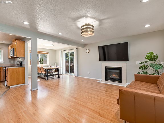Beautifully maintained 3 bed, 2.5 bath home with 1,525 sq ft of comfortable living space! Tucked on a quiet street, this light-filled home features a spacious open layout, cozy fireplace, and a functional kitchen with plenty of cabinet space and a pantry. Enjoy a large primary suite with full bath and walk-in closet, plus two additional bedrooms upstairs. This home includes a covered patio and a private, fenced backyard ideal for relaxation or gardening, with fruit trees, grape vines, as well as a tool shed. The property also provides a 2-car garage and gated side parking, perfect for boat or RV. New roof, interior and exterior paint (2021). Updated primary suite and all bathrooms, and new luxury laminate flooring uptairs (2025). Conveniently located near parks, public transit, and essential amenities, this home represents an excellent opportunity for first-time buyers or investors. [Home Energy Score = 6. HES Report at https://rpt.greenbuildingregistry.com/hes/OR10239714]