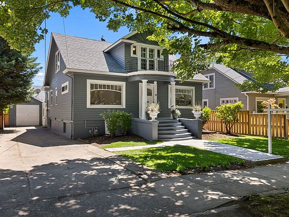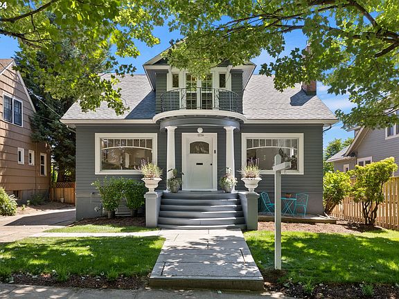 Adjacent to Ladd's Addition on a serene and shady tree lined street this classic home evokes the spirit of Portland with the bridge motif on display in the mullioned picture windows which are echoed in the dining room built-ins as well. You'll also notice the sun rays crowning the peak over this lovely home's charming Juliet balcony. Picture yourself perched there on one of Portland's spectacular summer days, relaxing in the afternoon breeze. Throughout this spacious home you'll appreciate the ample room sizes, especially of the 5 bedrooms, (3 of which are upstairs). You'll also appreciate the storage galore & gorgeous refinished wood floors; cool white oak on the main floor and warm fir upstairs. In the bright kitchen with plenty of room for an island, cooks will love all the cabinet space for storing chef's gadgets & the open layout for entertaining. Share stories and meals with loved ones in the beautiful dining room, or out back on the covered patio. Pop downstairs to watch movies in the enormous den. The separate outside entrance may inspire an ADU...plenty of space for one! If you're inclined to dine out, the nearby restaurants will make deciding the hardest part of the evening. In the heart of close in Southeast, take your pick of all Hawthorne or Division have to offer; dining, movies, retail, hardware, grocery are easily accessible. This special house is just waiting to be your home! Recent mechanical updates include high efficiency furnace, AC, hot water heater, garbage disposal & roof.