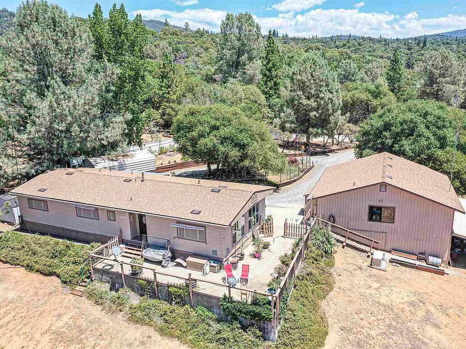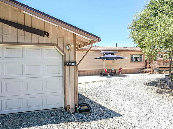 Views, Views, Views!! This is a beautiful manufactured home that sits on almost 5 acres. It has one of the best views in town. Enjoy the sunset on the back private deck. This home has a brand new roof and a new roof on the oversized garage as well. The house is surrounded by a concrete patio where you can sit and enjoy a quiet dinner. There is a carport, and an RV shed followed by a tool shed down by the garden, & RV hook ups. There is also a whole house generator from Generic. The yard is beautifully landscaped with a drip water system. There is lots of space to build a new house if you desire. It has a well and a clear septic system. Come see today!!