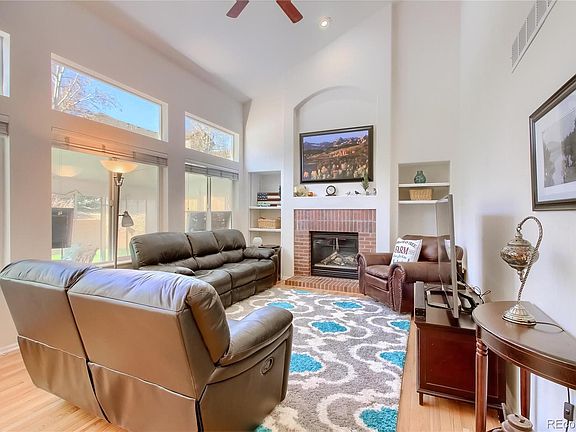 Welcome to this beautiful 2 story home in the desirable Saddle Rock Ridge neighborhood! As you enter, you will be greeted with gleaming hard wood oak floors and a soaring vaulted ceiling. This leads into the family room featuring another vaulted ceiling, gas fireplace and many large windows, allowing for plenty of natural light to pour in. You will love entertaining guests in the adjacent dining area. The kitchen features stainless steel appliances, granite counter tops, kitchen island, pantry and eating nook. The main floor is complete with a bedroom with walk-in closet (or perfect for an office), 3/4 bath and laundry room. Retreat upstairs to the master bedroom, which has a cathedral ceiling, 5-piece bath and a walk in closet. There are two more bedrooms upstairs and another full bath. Step into the back and into the enclosed sun room with family and friends! This amazing addition (not included in the house square footage) is perfect to enjoy with family and friends while being sheltered from the Colorado elements. The basement is unfinished and awaiting your special touches. The large 3 car garage, finished with drywall, has plenty of space for your favorite Colorado toys! Updated light fixtures throughout. You are close to all the amenities of Southlands Mall and easy access to E-470. Cherry Creek School District! You will love it all!