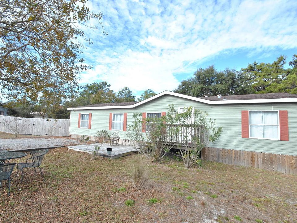 Overlook Drive, a quiet street on the West end of Panama City Beach, the home features three bedrooms, two full baths,irrigation, solar panel curtains, privacy fenced backyard with double gates and a detached two car garage with storage. Located on a cul-de-sac with an enormous backyard, one mile from the Gulf of Mexico, .2 miles from Lake Powell, 7 miles from Pier Park, the location is superb! The interior - 2 yr old HVAC, fireplace, laundry room, dining, living and family room. The yard has irrigation, fenced back yard with a site built building and covered deck that measures 20x36, heated and cooled area is 12x20 with a mini-split HVAC. The home has been used as a vacation home with very little wear and tear. Land, garage, entertaining, space, privacy, on the WEST END, Come visit today!