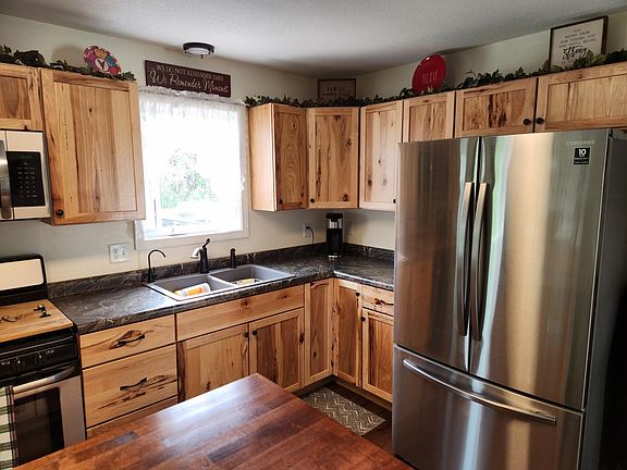 Nicely updated 3 bedroom 2 bath home in a rural location. New addition to home in 2019. Several items are updated including kitchen, bathroom with main floor laundry, flooring, trim, windows, and siding. Enjoy the big yard. The 2 garages will give lots of room for all the extra toys. This is must see property!
