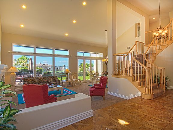 Gorgeous 24-hour guard-gated, Canyon Estates home situated on one of the best & sought-after streets in the community. This 3480 square-foot beauty was recently remodeled adding today's modern conveniences. You will be impressed from the moment you step foot inside the grand living room which boasts massively high ceilings & great, big, tall windows, which brightens this ultra spacious Canyon Estates jewel. Featuring upgraded floors throughout: porcelain tiles, wood floors & new carpets; custom window shades with some remotely controlled, Intercom system, Central Vac, security system, tankless water heater, fully remodeled gourmet kitchen with center-island cooktop. Elegant Master Bedroom offers 2 wardrobe closets; 1 walk-in & a 2nd large standard closet. The master bath features 21" porcelain tiles with separate tub & large enclosed shower. 5 large bedrooms with one converted into a highly functional office with built-in bookcase/wall unit. Large backyard with bbq and sitting area, fruit trees plus mountain & lake views. Association amenities include: gym, bbq/picnic area, playgrounds, sports courts, tennis courts, clubhouse for private parties, 2 swimming pools, jacuzzi & sauna. If your buyer is looking to live in Canyon Estates, this is "the" home!