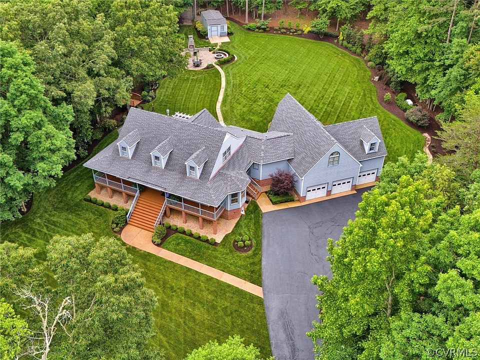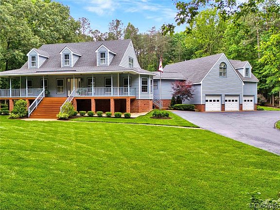 OPEN HOUSE CANCELLED. Welcome to 22341 Skinquarter Rd! 11.86 acres & a beautiful home w/ 4 beds, 2.5 bath, over 3,400 sq ft., a 3 car attached & 3 car detached garage in Moseley of Chesterfield County! This home has so much to offer, from the immaculate yard, private acreage, custom finishes, spacious floorplan, & so much more! As you walk onto the wrap around covered porch & step inside the home, you are greeted by hardwood flooring throughout, recessed lighting, crown moulding, & a custom-built storage bench. The morning room/dining space to your right has a bay window overlooking the private yard & is open to the kitchen that features a peninsula wet bar/breakfast bar w/ wine fridge, Jenn-Air double wall oven, smooth top countertop range, SS appliances, granite countertops, TONS of cabinet space & custom cabinets w/ crown moulding. Next you will find the breathtaking great room that has a 2 story ceiling & balcony, floor to ceiling Andersen windows & patio doors, gas fireplace, & access to the back porch with a walkway to the stone patio w/ outdoor fireplace, detached shed & DETACHED 3 CAR GARAGE. The 1st floor primary suite has french doors, plantation shutters, hardwood floors, an en-suite full bath with a double quartz vanity, tile floor, steam glass shower, freestanding soaking tub, TWO walk-in custom closets, & an office/study. Off the kitchen is a spacious laundry room with custom cabinetry, half bath, wet bar, & access to a covered porch along with the impressive 2 story vaulted ceiling screened-in porch w/ recessed lighting. Upstairs, there's upgraded carpeting, 2 bedrooms w/ wooden plantation shutters & double door closets. There's also a fully UPDATED hall bath with double vanity, tiled shower & tub, bench window seat, & linen closet. The finished 3 car garage is heated/cooled with tiled flooring, built in storage, recessed lights, & a kitchenette. Lastly, there is a separate suite W/ its own staircase that features a half bath, living room, french doors, Palladian windows, & a potential 4th bedroom.