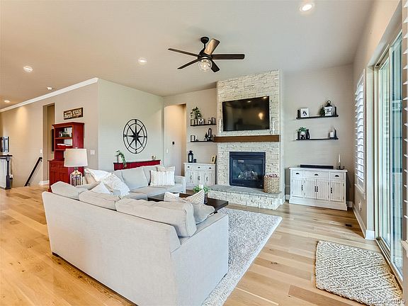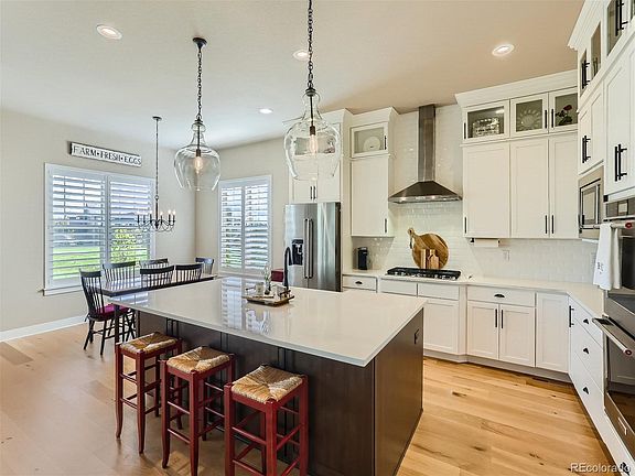 Welcome to 22345 E Mosey Circle, a beautifully designed award-winning floorplan, 3-bedroom, 3-bathroom ranch-style home located on a premium oversized lot that backs directly to serene open space and fronting to open space with city views. This property offers an exceptional blend of luxury, comfort, and convenience. Step inside to discover a spacious and airy layout that seamlessly connects the living, dining, and kitchen areas. The heart of this home is the stunning modern gourmet kitchen. It features extended glass cabinets above, providing ample storage and a beautiful display for your finest dishware, a vent hood above the 5-burner gas cooktop, quartz countertops, and a large extended island that doubles as a breakfast bar. Whether you are preparing a casual meal or hosting a dinner party, this kitchen is sure to impress. The primary bedroom is a tranquil retreat, complete with a spacious walk-in closet with a closet organizer and an en-suite bathroom featuring dual vanities, and an extended spa-like shower. Two additional well-appointed bedrooms offer comfort and privacy for family members or guests. Each bedroom is designed with ample closet space and large windows that fill the rooms with natural light. Enjoy the beauty of Colorado’s outdoors from the comfort of your covered oversized back patio that overlooks open space. The immaculate yard features a delightful water feature and plenty of space for gardening, play, or relaxation. As if this was not enough, this home also offers a large garden level basement and oversized 3 car garage. This home truly shows and feels like a model home! Don’t miss the opportunity to make 22345 E Mosey Circle your new home. Schedule a showing today and experience the perfect blend of modern living and timeless elegance in this exceptional property.