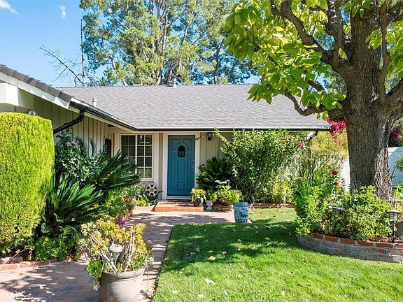 Welcome to this beautifully maintained 4-bedroom, 2-bathroom single-family home that radiates high curb appeal and charm from the moment you arrive. A lush front yard with vibrant landscaping, manicured shrubs, and colorful blooms leads you to an inviting entryway. Upon entering, you will find a well-lit interior with abundant natural light, an inviting open floor plan, and tasteful upgrades that enhance both style and comfort. The spacious living room, to your right, features a brick fireplace and large windows, flows into the dining area and kitchen. The kitchen has granite countertops, a stainless steel double oven and a new S/S dishwasher. Off of the kitchen is the laundry closet. Adjacent to the dining area is the newer glass sliding door that opens to the large backyard with a patio cover. The backyard, with mountain views, is a private oasis, filled with mature greenery and a succulent garden. At the far right corner of the yard lies a serene koi pond with a cascading waterfall. At the far left of the yard, there is a wooden deck with a jacuzzi. This outdoor space is perfect for relaxing and entertaining. Back inside, this lovely home features a master bedroom with an en-suite bathroom, 3 additional bedrooms, and a hallway bathroom. The first bedroom, located on the left side, was turned into a recreational room with the door taken out. The other 2 bedrooms and the master have mirror closet doors. Both the master bath and hallway bath have upgraded vanities and fixtures, and the hallway bath also has newer glass enclosure for the tub. Ceiling fan in the master bedroom, wood-like flooring in all bedrooms and hallway, marble flooring in the kitchen and bathrooms, freshly painted interior, crown molding, wood-like blinds, new rain gutters, sprinklers in the front and backyard, 2-car garage. No Mello-Roos, No HOA. All the thoughtful upgrades and care with timeless comfort shows pride of ownership. This home is move-in ready, and designed to impress from the first glance to the last.