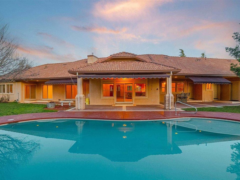 BACK UP OFFERS WELCOME! Welcome to this stunning Mediterranean-style home located in the highly desirable Springfield Estates. This single-story residence features four bedrooms and three bathrooms, a sizeable kitchen with center island, breakfast bar, breakfast nook, formal dining room, and vaulted wood ceilings in the living room, all providing abundant space and privacy for the entire family. Spanning an impressive 3,345 square feet, this home offers a spacious and comfortable living environment. Its drive-through portico entry exudes elegance and convenience. Boasting a three-car attached garage and an additional detached garage for an RV and two additional vehicles. An added bonus is an oversized covered carport to park your boat or recreational vehicle under, offering ample space for all your toys, vehicles and recreational needs. Indulge in a resort-style experience and delight in the sparkling swimming pool featuring an Acapulco shelf with built in umbrellas, pool solar system and the covered patio and 3 retractable awnings, perfect for entertaining guests on those warm Summer days. Privacy and security are paramount in this property as the circular driveway is gated at both ends and not only adds to the charm of this home but also provides ease of access for guests and a