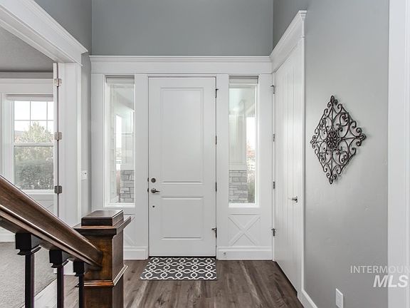 Beautiful & immaculate home in the coveted Taylor Ridge Subdivision. Split bedroom floor plan with the master, office/extra bedroom on the main floor. Master has walk in closets & shower with separate bath tub, dual vanities, & access to the covered back patio. Open family room, dining room & Kitchen with beautiful finishes, an island with granite countertops, double ovens, and walk in pantry. Laundry room & powder bath also on the main level. upstairs you will find 3 bedrooms with 2 having walk in closets, a great bonus room with storage, & a full bathroom. Cellular blinds through out home with blackout cellular blinds in bedrooms. Massive garage with RV bay, & epoxy floors. Home is west facing so the amazing backyard with Mature trees & landscaping, a firepit, zip line, trampoline, chicken coop, garden beds, fruit trees, & 10x16 shed, has shade in the evenings. This location is close to Nampa, Caldwell Indian creek shopping and restaurants, with easy access to freeway to get anywhere fast.