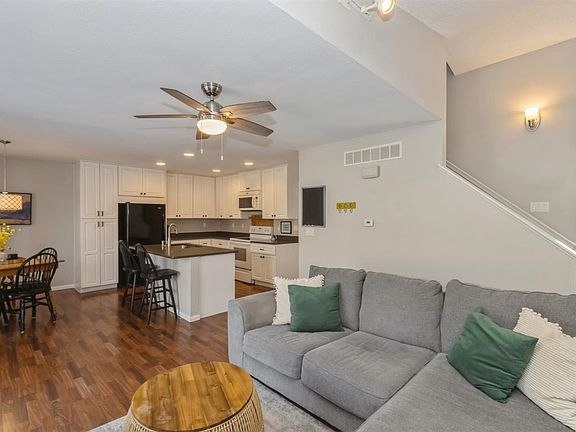 Convenient location to shopping and activities, this 3 bedroom, 2.5 bath home has been well cared for with updated flooring on the stairway (carpet) to second floor and to the bedrooms and bath (LVP). The large, fenced in yard has a very nice deck with a sliding door off the home's kitchen. The upstairs' ceilings are vaulted, with one bath and a walk-in closet. The main floor is an open floor plan, with solid surface counters, a wood burning fireplace, laminate flooring, and kitchen island. The lower level can be used either as a family room or a large 3rd bedroom (there is an egress window), with a second full bath, closet space, and under the stairs storage space.