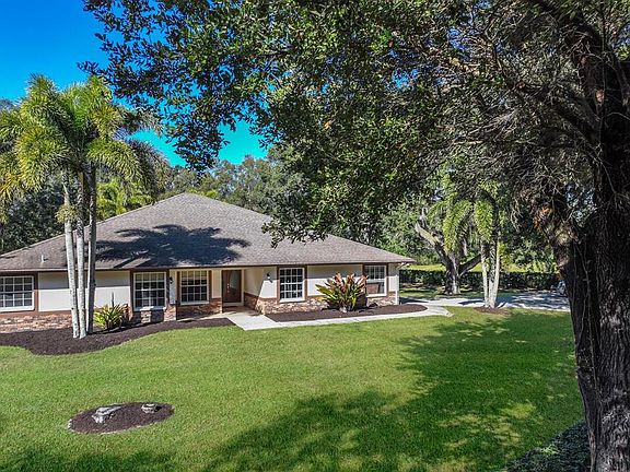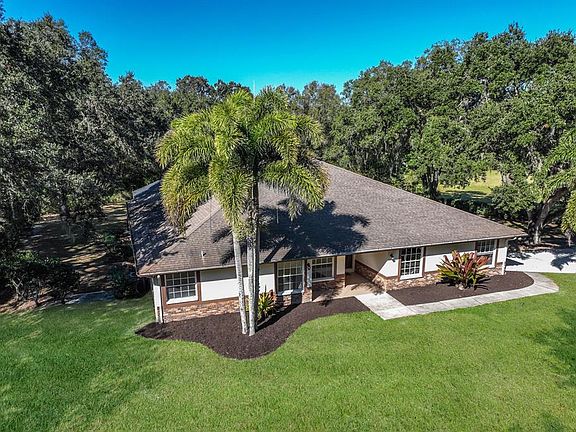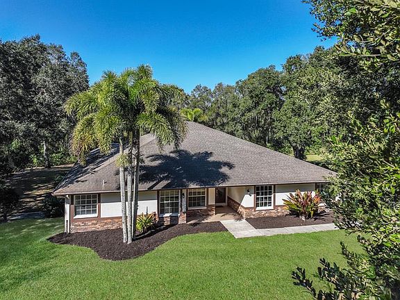 **HIGHEST AND BEST OFFER DUE BY SUNDAY, JANUARY 9TH AT 3PM.** PEACEFUL AND PRIVATE UPDATED POOL HOME IN AN AMAZING LOCATION! Looking for privacy? This stunning property will fill your need with a beautiful 3066 sq ft home set amidst mature trees on a 3.4-acre lot. As you approach the property from the private driveway, the clearing opens to a contemporary home with extensive landscaping and graceful palm trees welcoming you. Huge double doors open to give you a glimpse of the simple, yet tasteful design featuring an oversized family room with an accent wall, light-colored wood flooring, cathedral ceiling, and natural light spilling in from all directions. The family room is sleek with recessed lighting, a skylight, and French doors leading to the enclosed pool and patio area. Perfect for entertaining, a custom-made knotty pine wet bar area seats six people and you can watch the game or listen to music on the built-in speakers. Steps away through the French doors are the screen-enclosed patio and pool area, featuring a spectacular pool and spa overlooking the large yard, surrounded by trees for your privacy. The floor plan includes an eat-in kitchen with a dining area and a breakfast bar that seats four, great for casual dining. Home cooks will love the kitchen with beautiful cherry cabinets, plenty of granite countertops for prep, pantry, and storage. The master suite includes a spacious carpeted bedroom with a ceiling fan, walk-in closet, and ensuite bathroom with a double sink vanity, walk-in tiled shower, and a separate spa/hydro massage soaking tub. Two additional bedrooms in a separate wing will house guests or family, and a full bath with tub/shower combinations service the bedrooms. This property includes an amazing yard, plenty of parking for vehicles and boats in addition to an oversized garage. Just minutes from amenities like shopping and restaurants indulge in your own private paradise with this stunning property!