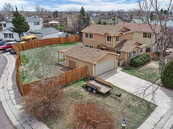 Wonderful 3 bedroom home on corner lot available! Property includes a open concept, living room/dining room/ kitchen combo with ceiling fan perfect for entertaining. Eat-in kitchen features hardwood floors and all major appliances included! Main level also has family room with wood burning fireplace and washer/dryer hookups. All bedrooms are on the upper level including the master bedroom with adjoining bathroom. Additional amenities include sprinkler system & fenced backyard and patio. Close to schools, shopping and more! Great location for a short commute to Air Academy, Peterson AFB, Shriever, and Fort Carson.