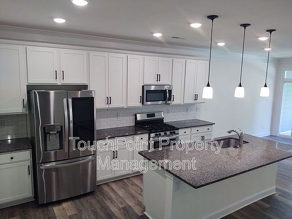Breakfast-bar areaOpen floor planLarge islandGranite countertopsVinyl plank flooringStainless steel appliancesCovered back patio