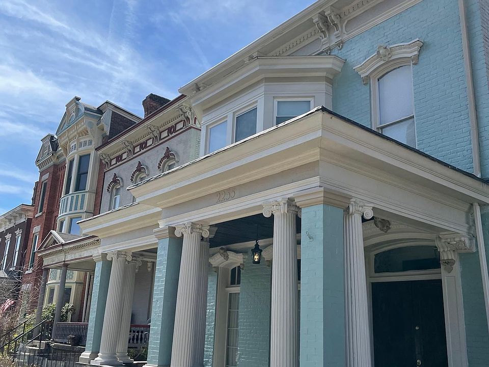This historic Neill House townhome is perfect for anyone who wants living on the ground level. There is plenty of historic charm and it features hardwood floors, beautiful fireplace mantels, pocket doors and high ceilings. There is a grand living room and parlor with an adjoining large dining room with coffered beam ceiling. There are two bedrooms a large laundry room and a white tiled bath. There is also a covered rear and side porch and off-street parking. It is located in the Historic Centre Market District and close to post office and I-470 and public transportation route. A one year lease is required and Tenant pays Owner an additoinal $300/mo for Water & Electric and the tenant pays for gas. The Owner also takes care of all snow removal and lawn care.