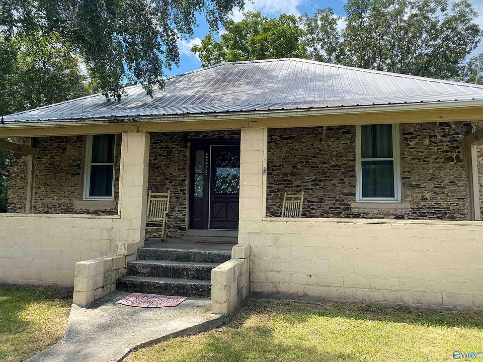 Enjoy your morning coffee on the front porch of this adorable rock home on 1.9 +/- acres. The kids will enjoy this large shaded lot and playing on the tree swing. Conveniently located. 3 spacious bedrooms and 2 baths. New luxury vinyl flooring and paint throughout most of the house. Bedrooms, foyer and living room has been remodeled and tastefully decorated. Kitchen, dining room and bathrooms are ready for the new owner to design to their specifications. Many of the fixtures, flooring and cabinets are purchased and ready to install. Home is being sold as is with no known defects. New breaker box and windows with transferable warranty. Metal roof. Two carports. Detached building/garage.