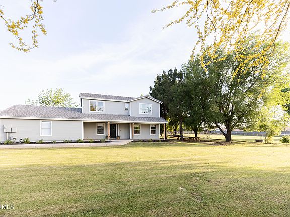 Outside the yard boasts over two acres of fenced, irrigated land with two separate fenced horse pastures, corrals, a plethora of large shade trees and a separate out building and chicken coop. Owners have added a relaxing firepit area with classic adirondack chairs under the shade trees strung with lights just off the huge extended back covered patio. Yard also has custom built wooden tables to seat all of your friends and family along with an aluminum water tub that can be used to cool off on those hot summer days. You'll enjoy a hammock under the trees and room for all to run and play since the grass in the large side pasture is mowed. Updates throughout the home include: new A/C units, electrical work, plumbing/septic system update, new drywall, rebuilt staircase and railing, new windows and doors along with new garage doors. An extra A/C unit was added so the option of converting the large 3+ garage space into a downstairs master suite is available. Furniture is also available to purchase on a separate bill of sale (minus the antique desk in the upstairs twin bedroom).