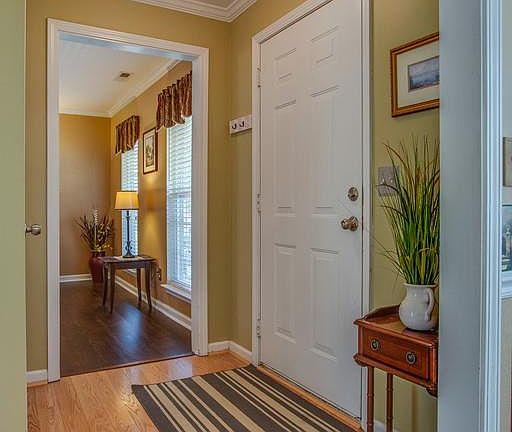 Charming porch front home in great neighborhood, close to shopping, Rest & Rec Center, Walking distance to award Elem school & walking trail.Well maintained home with new flooring in living Rm, fresh paint throughout, new fixtures, nice crown molding, jacuzzi tub in MB. Extra walk in storage. Lrg fenced backyard with extra Lrg patio.