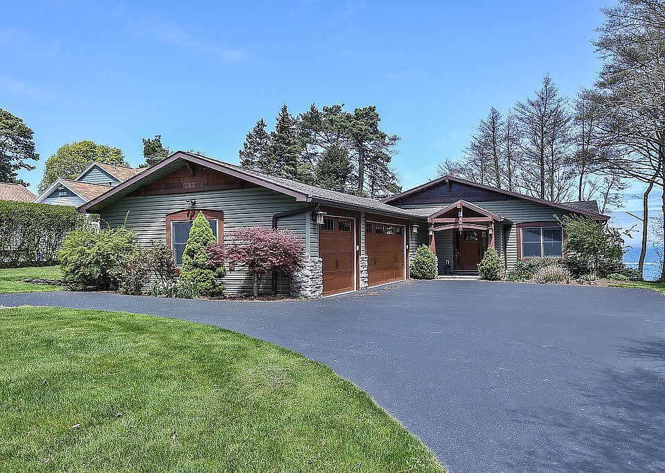 ADDITIONAL 962 SQ FT IN FINISHED WALKOUT LOWER LEVEL & 240 SQFT IN ENCLOSED PORCH. Expansive Colorado contemporary style ranch on professionally landscaped private 1.22 acre lot with 100 ft of desirable lake front. Hardwood floors, tongue & groove vaulted pine ceilings, master suite, office/ 4th bedroom, fireplaced great room, dining area, updated kitchen with seated island, stainless appliances. Enclosed porch has gas corner fireplace. Finished fireplaced lower level. Outside features a mahogany trimmed stamped concrete entry, multi-tiered Trex deck with gas fire pit & glass rails. 10'x 24' shed. 24'x50' 3+ car attached garage. First floor laundry/ mudroom . Newer central air. Fully renovated in 2007.