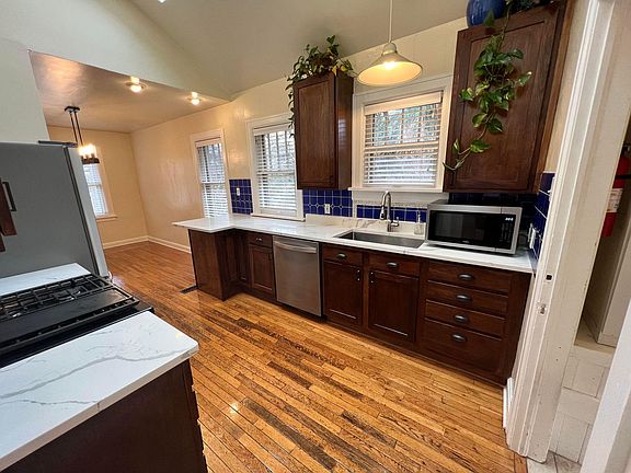 Come see this brick bungalow perfectly situated near Sloan's Lake in a quiet neighborhood setting, but just blocks from the new Sloan's Lake Development, Highland's Square, and Edgewater. With these areas just a quick walk or bike ride away, you'll have access to restaurants, bars, a movie theater, breweries, gyms, etc. The home features three bedrooms (one non-conforming), two bathrooms, and two living rooms. Upstairs, after entering from the covered front porch, you'll find the living room with wood burning fireplace, two bedrooms, one bathroom, the dining room, and the freshly updated kitchen with quartz countertops and brand-new stainless steel appliances. There is freshly refinished hardwood throughout the main floor. Downstairs you'll find the laundry room, a freshly renovated bathroom (with large tile shower), one bedroom (with walk-in closet) and a massive living/TV room (which could be another non-conforming bedroom or workspace, if preferred). There is tile throughout the laundry and bathroom, with carpeting in the downstairs living room and bedroom. For heating and cooling, there is an evaporative cooler and natural gas forced air furnace with Sensi smart thermostat (and a one-year-old gas water heater). Also included are the kitchen appliances brand new matching stainless refrigerator, gas oven and range, dishwasher, and microwave. The LG washer and dryer in the laundry are both included as well. The backyard features two grass areas with mixed tree/shade cover and sun exposure. There is also a brick patio, an enclosed garden, a parking pad/sports court with basketball hoop, and one car garage with access to the alley. Tenant is responsible for utilities (gas/electric and water) as well as any optional internet, tv, or city composting bin service. Trash/recycling services are included. Pets allowed with a $20/month fee per pet, and a $200 refundable pet deposit. The home is nonsmoking and offered unfurnished.