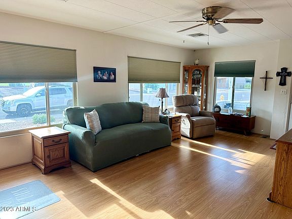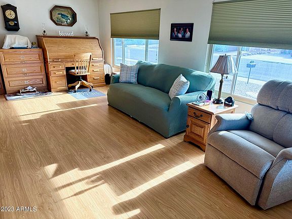 WELCOME HOME! Snowbirds LOVE to migrate here for the winter months and permanent residents enjoy year round amenities in amazing APACHE WELLS Golf Community! Incredible light & bright 2 bedroom, 2 bath home with spacious garage (fits 1 car & golf car) AND even has a covered Carport situated on a nice large lot. UPDATES- 2013 Energy Efficient windows let in so much light! 2017 Hot Water Heater & pressure gage, 2019 new AC/Furnace, 2020 Owners suite Full bathroom remodel w/ double sinks/quartz countertop, fixtures & custom low entry shower, 2022 home exterior painted, Custom Workshop off garage with soooo much storage!! Amenities - Pickleball, Baseball Field, Woodworking Shop, Quilting club, Workout Facility, Pool, Spa, Dog Park, & MORE...